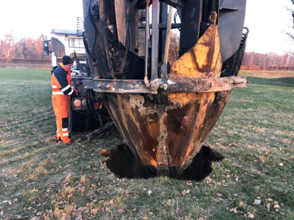 – Vi har ønsket at skabe en mere parklignende bane og nogle smukkere huller. Og derfor gik vi altså i gang i dag, fordi frosten har gjort, at underlaget er nogenlunde hårdt til den tunge lastbil, forklarer Nicholas.