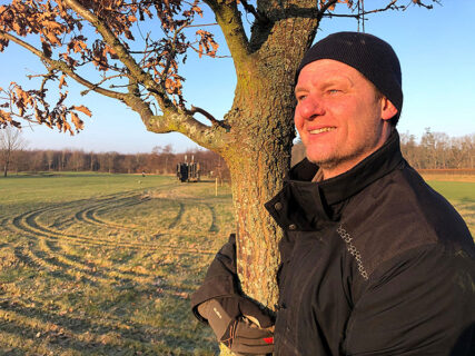 – Selvom det har været koldt, så er lastbilen med et træ ’på ryggen’ altså virkelig tung. Og derfor kommer der nogle dybe spor, når den flytter træerne. Også selvom vi gør alt for at køre mest muligt i roughen. Men jeg håber, at sporene retter sig til sommer, ellers jævner vi det selv ud med noget frisk muld, siger Nicholas.